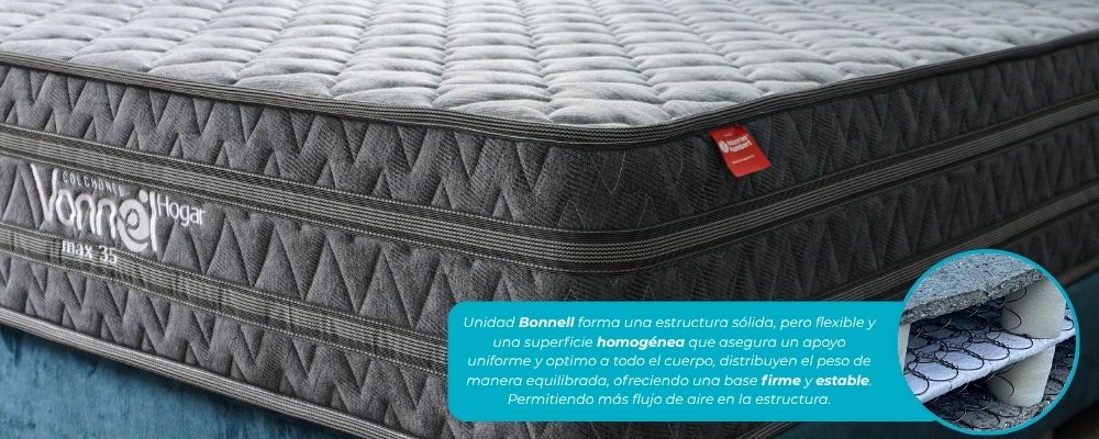 El colchón Max 35 Plus es una pieza de ingeniería del descanso que combina ergonomía, firmeza, confort avanzado y tecnología. Su estructura interna se adapta a la forma natural del cuerpo, ofreciendo un soporte progresivo y estable. Incorpora tecnología antioxidante, lo que garantiza mayor durabilidad y protección de las espumas internas. Diseñado para quienes buscan lo mejor en confort y soporte.