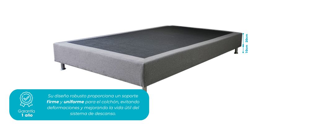 | Tamaño | Sencillo | 100X190, Semi doble | 120X190, Doble | 140X190, Queen | 160X190, King | 200X200 |